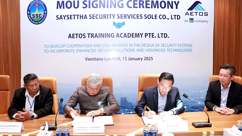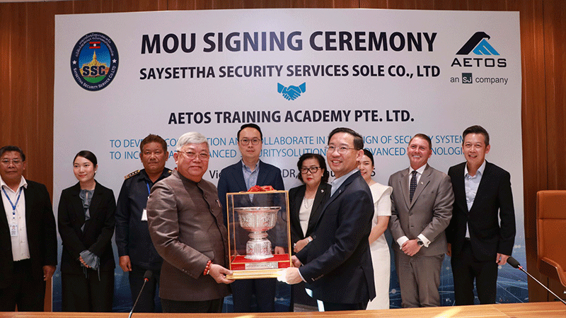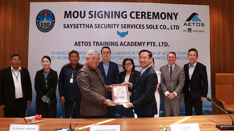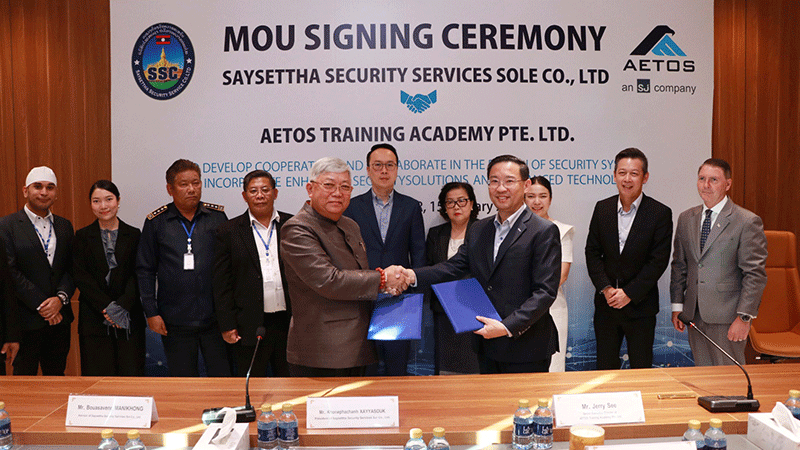 The agreement was signed by the President of Saysettha Security Services, Mr Khonephachan Xayasouk, and the Senior Executive Director of AETOS Holdings, Mr Jerry See.