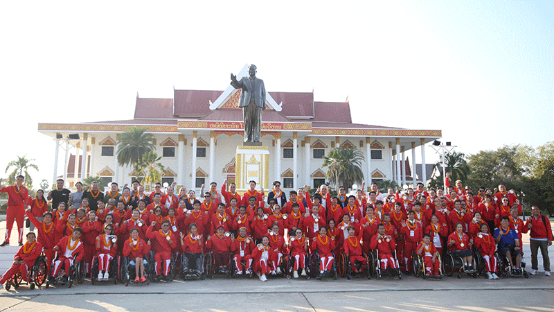 President of the National Paralympic Committee of Laos, Mrs Khanthaly Siliphongphan, and Director General of the Department of Sports for All Physical and Art Education, Mr Vilavanh Bounsoukthay, sports federation officials, trainers, and competitors on Tuesday gather at the President Kaysone Phomvihane Museum in Vientiane after returning from the ASEAN Para Games in Thailand. |