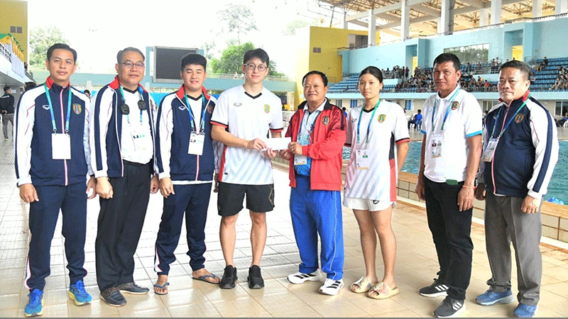 The swimming competition of the 12th National Games opened with outstanding results as athletes from the Ministry of Public Security captured a total of three medals, including one gold and two silver. The ministry’s first gold medal was won by Santisouk Inthavong in the men’s 50-metre freestyle event, while the two silver medals came from Dalinh Inthavong in the women’s 50-metre freestyle and Soukkanya Vongxai in the men’s 50-metre breaststroke. Gold medallist Santisouk Inthavong expressed his pride after the race, attributing his success to the dedication of coaches and fellow athletes who trained tirelessly. He pledged to continue striving for better results in upcoming events. The medal ceremony of the event was held at the National Sports Complex (Lao-ITECC Pool) and was officiated by the President of the Vientiane Swimming Federation, Mr Chonnicon Phommasith, who was joined by representatives of relevant sectors. |