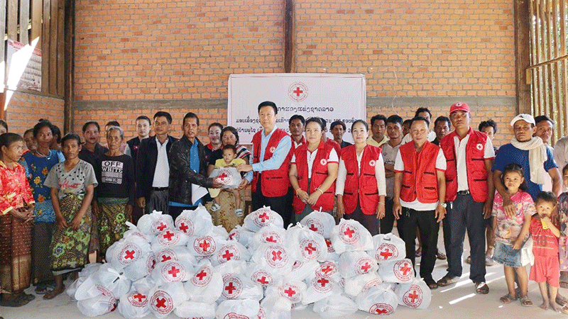 President of the Lao Red Cross Mr Khamlavanh Chanthalavanh and his staff deliver household supplies worth 460 million kip to families in two districts of Savannakhet province and two districts of Salavan province, to help them recover from losses suffered during recent storms. The funds were donated by the Embassy of Canada to Laos. --Photo Pathetlao |