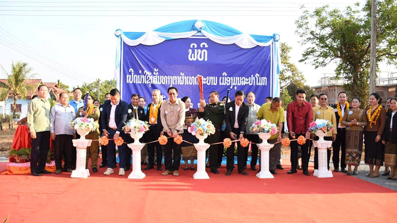 Party Central Committee member and Secretary of the Champasak provincial Party Committee, Mr Alounxay Sounnalath, and senior officials on Wednesday cut a ribbon to mark the completion of repairs to five roads over a distance of 4,050 metres in Mounlapamok district. The cost of the repairs amounted to 5,826,000,000 kip, funded by Champasak province. --Photo Pasaxon |