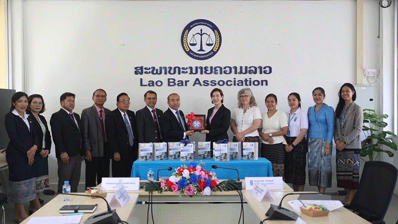 President of the Lao Bar Association, Mr Viengsavanh Phanthaly, and Representative of the United Nations Development Programme (UNDP) Lao PDR, Ms Martine Therer, exchange commemorative items during the handover of training room equipment and professional guidebooks valued at more than US$1.2 million at the Lao Bar Association in Vientiane on February 26. The supplies were provided under the Lawyer Project (2022-2025), funded by the Bureau of International Narcotics and Law Enforcement Affairs at the U.S. Embassy in Vientiane, to strengthen continuous professional development, improve legal aid systems, and support implementation of the Bar Association’s 2025-2030 strategic development plan. |