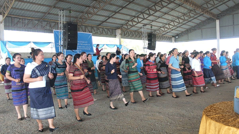 Members of Xekong province’s Women Union, businesswomen, and other women from around the province last week gather to dance in the provincial capital to celebrate International Women’s Day after listening to a talk on the significance of the occasion. --Photo Pasaxon |