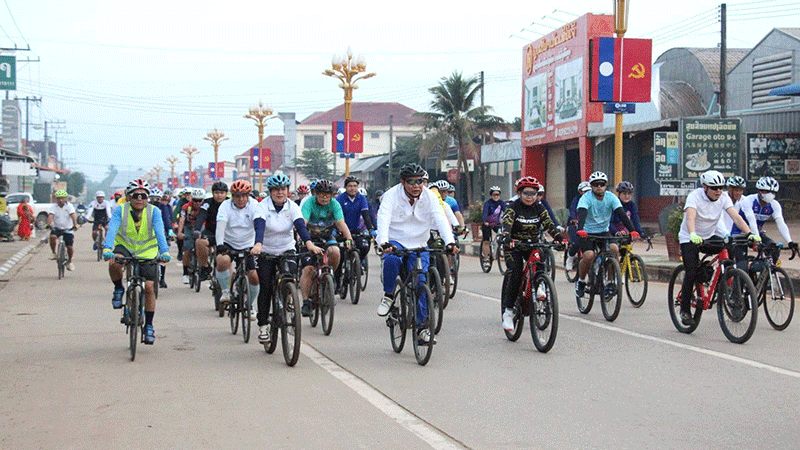 Government officials in Khammuan province take to the streets on bicycles on Friday, sharing in a friendly activity to mark International Women’s Day on March 8. --Photo Pasaxon |