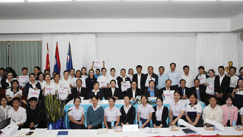 The President of Twelve Integrated Agricultural and Lao Products Company, Mrs Anith Sivisay, joins students and representatives from Pakpasak Technical College for a group photo during the International Women’s Day celebrations. The ceremony marks the 116th anniversary of International Women’s Day by The Women’s Union of Pakpasak Technical College. Held on March 6, 2026, the event was attended by the Director of Pakpasak Technical College, Mr Phoxay Boulom, and the President of Twelve Integrated Agricultural and Lao Products Company, Mrs Anith Sivisay, alongside staff and students. |