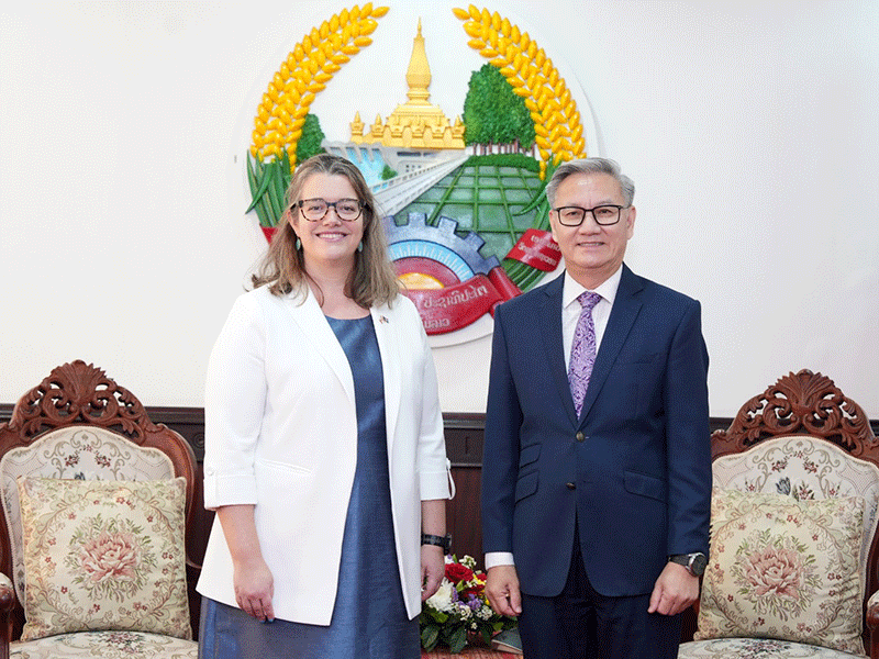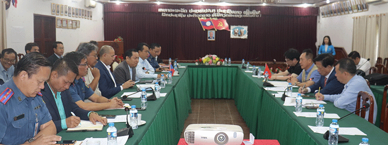 Lao representatives of the Chorise cosmetics brand manufactured in the Republic of Korea, Ms Toula Seesarn and Ms Chansamone Khounyatha, and the brand’s sales agents in Thailand meet in Vientiane on Monday to sign an agreement on the sale of Chorise products in Laos. |