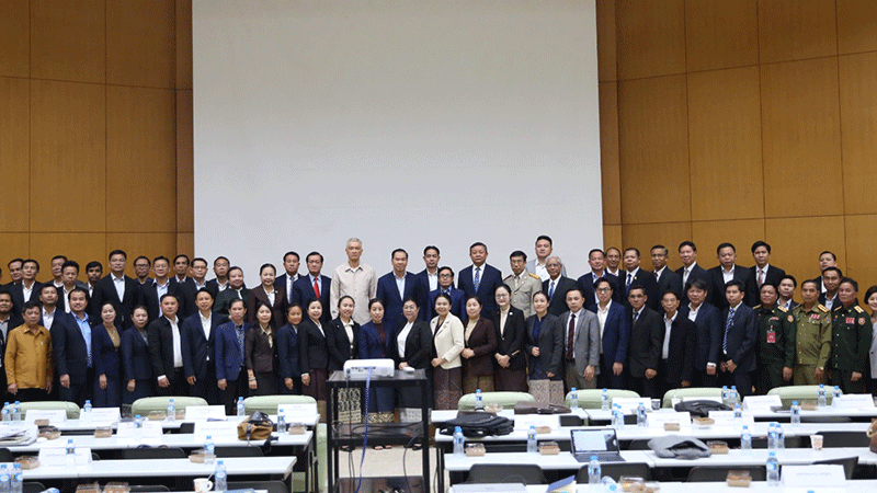 Minister of Education and Sports, Associate Prof. Dr Thongsalith Mangnomek; Head of the Institute of Politics and National Administration Dr Anouphab Tounalom; officials from various ministries; and representatives from the National University of Laos, Souphanouvong University in Luang Prabang province, Savannakhet University, Champasak University, and other entities attend a national higher education executive meeting at the National University of Laos to discuss the direction of higher education going forward. |