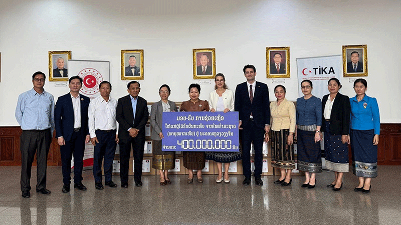 The Turkish Cooperation and Coordination Agency (TİKA) and the Turkish Embassy in Vientiane on Tuesday donated 500 boxes of food and drinking water worth 400 million kip for distribution to families who suffered losses in a hailstorm that hit Vientiane last month. The Ambassador of the Republic of Türkiye, Ms Oya Yazar, handed over the donated items to the President of the Lao Women's Union, Mrs Aly Vongnobountham, and Vice Chairperson of the Vientiane Administration Committee, Ms Vilayvone Chanthalaty, in the presence of members of the Vientiane Disaster Management Committee. |