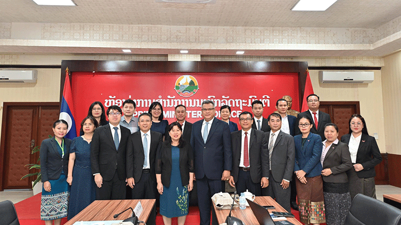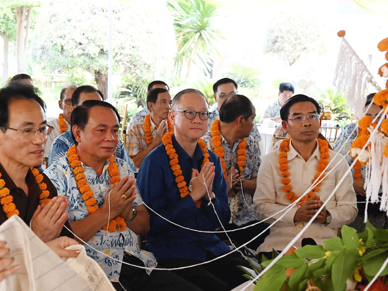Members of the Luang Prabang Provincial People’s Council, officials from the provincial Education and Sports Department, representatives of the Vietnamese Consul General in northern Laos and other individuals on Monday share in a groundbreaking ceremony to kick off construction of Vangngeun Vocational Normal School. The construction cost of 50 billion dong is funded by Quang Ninh province in Vietnam. The school is scheduled for completion in March 2028. --Photo Pathetlao |