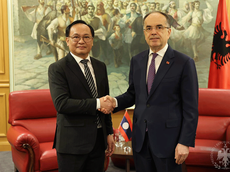 Mr Khamphone Vongsanty (left) on January 7 is welcomed by the President of the Republic of Albania, Mr Bajram Begaj, at the Presidential Office in Tirana, when Mr Khamphone presented his diplomatic credentials assigning him as the new Ambassador of the Lao PDR to Albania. The two countries established diplomatic relations in 1975 and enjoy mutual support in the regional and international arenas, as well as in the fields of tourism and agriculture. --Photo Lao Embassy to Albania |