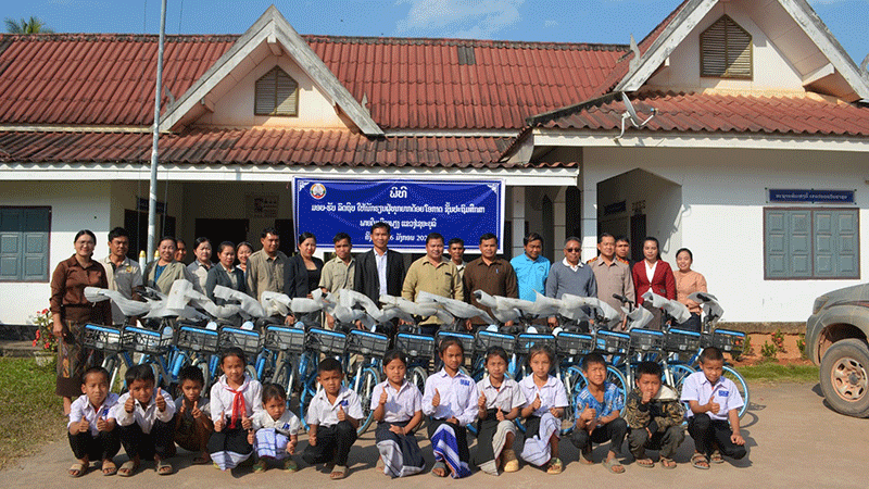 The Phieng district education and sports office in Xayabouly province last week gives 16 bicycles worth 13 million kip to 16 primary schools in the district. The bikes were funded by a Chinese foundation that seeks to improve conditions at schools in rural areas. --Photo Pasaxon |