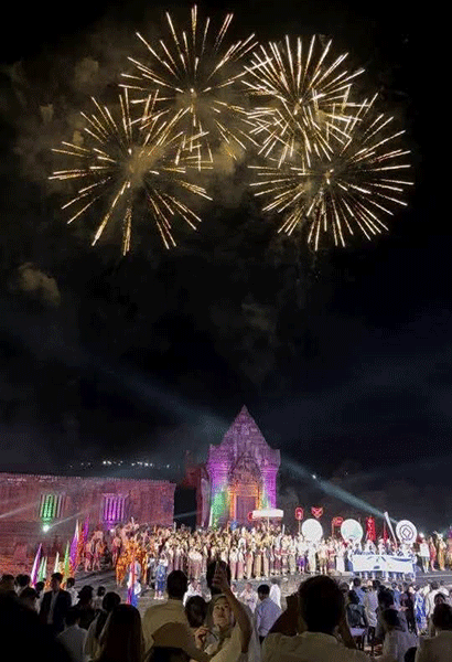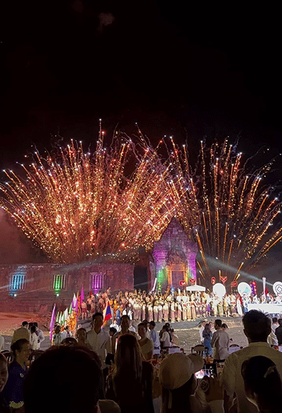 The official opening ceremony was a major highlight, featuring an impressive light show in which 590 drones formed images symbolising the origins of Champasak and the spiritual foundations of the Vat Phou Champasak temple.