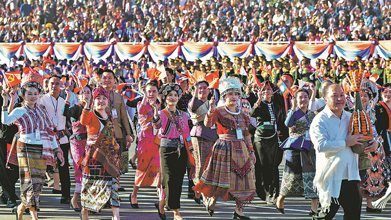 | A grand mass march is held on Tuesday in Vientiane to celebrate the 50th anniversary of the founding of the Lao People’s Democratic Republic. The celebrations also included a military parade. |